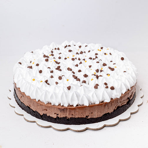 Dark chocolate mousse cake over a chocolate crust - smooth & creamy with a crunch