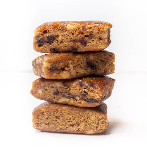 Chewy cinnamon-flavored brownies filled with dates & walnuts