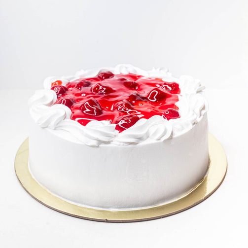 Shortcake filled with macerated & creamed strawberries, topped with a strawberry compote